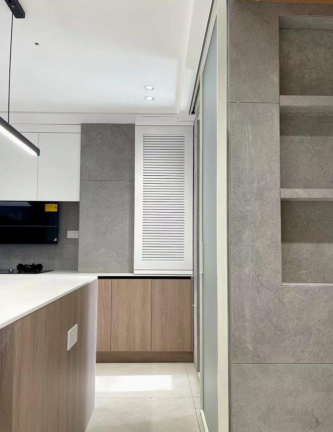 这个房子不是南北通透的,餐厅、厨房、次卧白天光线不太好,但是设计师把灯光布置的很棒,全房无主灯设计,做到了照明和氛围感兼顾。只要搭配好了筒灯和线条灯,能完全解决光线不足的问题。
